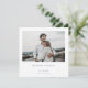 This simply chic minimalist modern photo wedding save the date card features your photo on the front. Your first names are highlighted by ample white space with just your date and location below them, with a save the date message on the back instead of the front or both sides. This effect is heightened by our unconventional use of upper and lower case. While we've used all upper case for your names, we've used lower case exclusively for the other text on both sides, even when upper case is usually called for, as in your city and state name, etc. We've taken this liberty in the spirit of following the rules unless we break one in a consistent way, thereby creating our own rule! ;) The default text colour on both sides is an elegant medium dark shade of blue, but you can change this to anything you'd like. As a default background, on both sides we've chosen a transparent base which makes the colour of the paper the base, for a simple, clean look. If you prefer another colour for one or both sides though, you can easily pick one with the editing tools. The default card shape is standard sharp corners but rounded corners also work wonderfully with this design, so try both looks in editing mode and see which grabs you! You can also change the colour, font style and size of the text. And of course you can use upper case where you see fit. You can also change or delete text fields-you might, for example, not need to include website info, etc., or you might prefer 'please' to 'kindly' in the save the date message on back. Make this card uniquely yours with the intuitive design tools and your inspiration. And please check our shop for a selection of save the dates in various formats like postcards and magnets, too!
