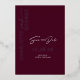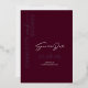 This Save The Date Card features a beautiful and minimalist design in burgundy, marsala, and silver colours, with modern calligraphy typography in REAL SILVER FOIL. Check out our Wedding collections to find the perfect matching items to make your special day even more special, and impress your guests with this beautiful design.
