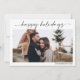 Simple photo Christmas card featuring a happy holiday modern brush calligraphy heading, a photo, family name and year's date. The back of the card is prepared for a second photo and the family message. Great for someone who likes modern minimalist photo card with a modern calligrphy heading.