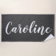 Simple beach towel with modern and elegant personalised name design in black and white.