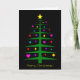 Stylish modern design of a Christmas tree with a yellow star and block color decorations in star, circular, diamond and heart shapes. Card has a black background and the message 'Merry Christmas' in yellow. Easily personalise this card by editing the template text.