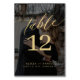 Elegant bold calligraphy script simple modern black and gold text dark overlay bride and groom names and photo personalised wedding table number. +++++++++ Please note that to order different numbers you need to customise them and put them in the shopping cart one by one (one card with no 1, another with no 2, etc).