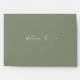 Add a refined, modern touch to your wedding suite with this dusty sage green envelope featuring a minimalist script design. The soft earthy tone and elegant typography create a stylish and understated look, perfect for spring or summer weddings with a natural or botanical theme. Whether you’re planning a rustic outdoor celebration or a modern minimalist event, this envelope brings a cohesive and professional feel to your invitations.