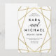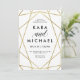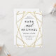 This stylish wedding invitation features a faux gold, geometric design on a sharp white background.