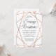 This stylish evening reception wedding invitation features a faux rose gold, geometric design on a sharp white background.