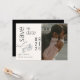 Photo & QR Code Save the Date | Elegantly designed on a soothing buff beige backdrop, a delicate line art flower graces the invitation, its petals adorned with subtle dabs of muted dusty blue spot colour. The simplicity of the design is elevated by the perpendicular arrangement of some text, adding a touch of uniqueness - design by ©WhimsicalArtwork™