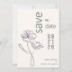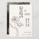 Photo Save the Date | Elegantly designed on a soothing buff beige backdrop, a delicate line art flower graces the invitation, its petals adorned with subtle dabs of muted dusty plum violet spot colour. The simplicity of the design is elevated by the perpendicular arrangement of some text, adding a touch of uniqueness - design by ©WhimsicalArtwork™