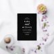 This stylish wedding invitation features a gold foil, modern geometric design on a dark, moody black background with elegant calligraphy.