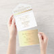 Embrace the beauty of simplicity with our elegant all-in-one wedding invitation. Featuring a stunning white and faux gold foil design, adorned with a delicate romantic rope heart and personalised with a custom picture of the happy couple on the back. Your invitation includes all the essentials: wedding details, wedding website, RSVP, and a cherished photo. Join us as we embark on this journey of love and unity. Save the date for a celebration that reflects the essence of modern romance.
