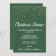 This minimalist modern|green christmas dinner invitation is perfect for a classy Christmas or holiday supper celebration. The design features festive gold confetti with elegant white calligraphy on a green background.