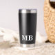 Minimalist Modern Initial Monogram Insulated Tumbler. Create your own personalised travel mug with custom initial name.