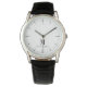 A sleek, minimalist wristwatch designed for men who appreciate refined simplicity. The crisp white face features a sharp black monogram and name, paired with slim hour markers for a clean, modern look. Finished with a black leather-style strap, this personalised watch makes a timeless gift for birthdays, anniversaries, or everyday wear.