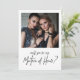 Simple, elegant and stylish black and white matron of honour proposal invitation. Design features single photo and ''will you be my matron of honour'' in trendy handwritten lettering.