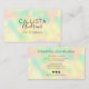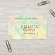This modern, chic, elegant, and simple business card is perfect for any makeup artist, hairstylist, aesthetician, aesthetician, or beauty salon. It features a minimalist and girly rainbow colour scheme (yellow, green, blue, pink) holographic iridescent abstract background and includes your business information on the back. It's an excellent way to advertise and spark new business. The design includes a black handwritten signature script typography. It's elegant, cool, unique, trendy, and stylish; the perfect card to attract customers.