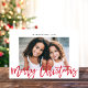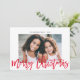 Minimalist Modern Red Script Merry Christmas Photo Holiday Card