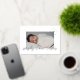 A beautiful single photo foil birth announcement in a minimalist and modern style. Features a tiny foil heart accent surrounded by baby's birth date and stats. Baby's name is written in a modern script font also in foil.