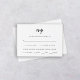 These elegant, minimalist wedding response cards feature modern script typography and clean, sans serif text for a simple and stylish black and white design you will love. There is room to add your guests options for meal choice of entree or dinner choice.