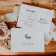 These elegant, minimalist wedding response postcards feature modern script typography and clean, sans serif text for a simple and stylish black and white design you will love. There is room to add your guests options for meal choice of entrée or dinner choice. Text is kept away from the top and bottom edges of the back of the postcard, to lessen the chance of it being covered on the top and bottom by postal markings.