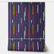 Embrace bold sophistication with minimalist, mid-century-inspired stripes in hot pink, white, and yellow on a deep navy background.