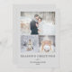 These elegant and minimalist style holiday cards feature simple modern black text, with room for three of your personal photos, on a soft gray background.