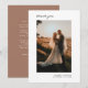 Create a modern minimalist personalised wedding thank you card to make your loved ones feel extra loved and remember your special day forever! Add your favourite wedding photo and customise the text to make it uniquely yours. This design includes a custom message on the back in white modern typography on a trendy beige mocha coffee natural-colour background.