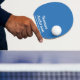 Minimalist, ocean blue Ping Pong paddle with your name in white. A minimalist and timelessly elegant design.