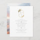 This wedding photo card is perfect for any couple looking for a formal, stylish invitation for their big day! This design features a white background with a gold leaf frame at the top with your first name initials. Under that is the invitation typography which is an elegant blend of traditional fonts but with a modern feel to them thanks to the minimalist look. On the reverse of this invitation is a full-bleed image that you can replace with your favourite photo!