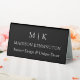 Modern Minimalist Table Sign. Black & White or choose your custom colours. Perfect for small business, company employees, self employed home office and more. Easy to personalise with your monogram initials, business name and information, job title, slogan or even add your logo or personal brand design.
