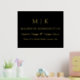 Modern Minimalist Gold Foil Print Poster. Black Background or choose your custom colour. Perfect for small business, company brands, self employed, mall kiosks, retail stores, trades shows & events, beauty salons, spas, caterers, bakeries, coffee cafes, restaurants, bars and more. Easy to personalise with your monogram initials, business name and information, photos, slogan or even add your logo or personal brand design.