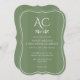 Minimalist Monogram Striped Muted Green Wedding Invitation
