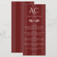 Minimalist Monogram Striped Rosewood Red Wedding Menu
