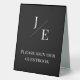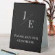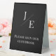 Invite your guests to leave their well wishes with this black minimalist monogram wedding table tent sign. Designed with the couple’s initials in elegant modern typography, the clean, simple layout blends effortlessly into any minimalist or monogram-themed wedding decor. The phrase “Please Sign Our Guestbook” is beautifully featured, making it easy to guide guests with both style and subtlety. Perfect for display on a welcome table or guestbook station, this sign adds a refined touch to your wedding day ambiance.