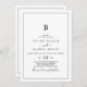 This minimalist monogram wedding invitation is perfect for a simple wedding. The modern romantic design features classic black and white typography paired with a rustic yet elegant calligraphy with vintage hand lettered style. Customisable in any colour. Keep the design simple and elegant, as is, or personalise it by adding your own graphics and artwork. Personalise the card with your last initial monogram.