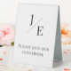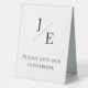 Invite your guests to leave their well wishes with this white minimalist monogram wedding table tent sign. Designed with the couple’s initials in elegant modern typography, the clean, simple layout blends effortlessly into any minimalist or monogram-themed wedding decor. The phrase “Please Sign Our Guestbook” is beautifully featured, making it easy to guide guests with both style and subtlety. Perfect for display on a welcome table or guestbook station, this sign adds a refined touch to your wedding day ambiance.