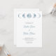 The text on the invitation is a combination of light grey block font and blue script font, creating a modern and sophisticated look. This design is ideal for anyone who has a passion for celestial themes, astronomy, or the beauty of the night sky. Whether you're planning a celestial-themed wedding or simply love the symbolism of the moon phases, this invitation is sure to set the tone for a memorable celebration.
