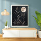 This captivating artwork captures the serene beauty of a moonlit night. The delicate silhouette of tall grasses stands in stark contrast to the bright, full moon casting its gentle light. This minimalist design evokes a sense of tranquillity and peace, making it the perfect addition to any home or office.