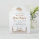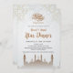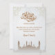 Celebrate the spirit of togetherness with this clean and modern Iftar invitation. Featuring a sophisticated brown mosque silhouette at the bottom and gold-outlined geometric stars at the top. The light grey patterned background adds depth while maintaining a professional look. Ideal for corporate Iftar events or family dinners.