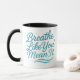 Breathe Like You Mean It" – A gentle reminder to slow down and embrace the present moment. This minimalist mug features flowing modern script typography in a calming sea blue gradient, accented with wavy underline strokes that mimic air currents or gentle waves. Floating dots and subtle sparkles add a touch of serenity, making it a perfect drinkware piece for meditation spaces, offices, or cosy home interiors. Designed with a clean, vector-inspired aesthetic and a transparent background, this mug blends effortlessly into any environment. Ideal for mindfulness enthusiasts, yoga practitioners, and anyone seeking a peaceful atmosphere. Makes a thoughtful gift for wellness lovers and those who appreciate elegant simplicity.