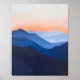 Transform your space with this stunning minimalist mountain sunset wall art. Featuring layered blue peaks against a warm, glowing sky, this modern landscape print adds tranquillity and elegance to any home or office.