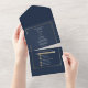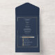 Minimalist Navy Background Gold Frame Wedding All In One Invitation