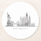 Minimalist New York City Skyline Line Art Round Paper Coaster