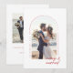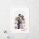 Celebrate your first Christmas together with this romantic newlywed holiday card featuring a sunlit beach wedding photo and elegant handwritten script. The modern minimalist arch layout creates a timeless coastal charm perfect for sharing love and joy. Personalize with your favorite wedding photo and names to make it uniquely yours. Spread warmth and happiness, personalize yours today.