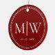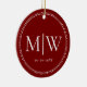 Minimalist Newlyweds Monogram Photo Red Holiday Ceramic Ornament