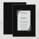 Capture the serene, clean aesthetic of a Scandinavian landscape with this high-contrast botanical design. A brilliant white rectangular card sits at the center, anchored by a deep, velvety matte black background that makes every detail pop. In the opposite corners, delicate sprigs of dark forest green fern reach inward, accented by tiny, dainty white berries for a touch of organic texture. This minimalist composition evokes a sense of modern sophistication and quiet woodland beauty, prioritizing sharp monochrome lines and natural grace for a truly timeless look. This invitation is the ideal match for a black-tie winter wedding, a modern minimalist ceremony, or a serene Nordic-inspired woodland event. The bold contrast is perfect for couples hosting an evening gala in an architectural venue or an intimate forest gathering where the focus is on natural, understated elegance. It sets a formal yet grounded tone that works beautifully across monochrome or deep green color palettes.