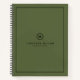 Modern notebook features a minimal design in olive green and black. Framed design with custom name and title presented in the centre in stylish simple font with a complimentary minimal monogram medallion. A modern minimalist notebook for home or office, a simple modern monogrammed notebook for your workspace. Ideal for consultants, attorneys, real estate agents, corporate or executive coaches, or any other business professional, or a thoughtful office gift for him or her.