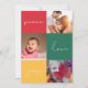 Peace, love and Joy: a positive message and a modern typography for this Holiday photo cards collection. To customise with your favourite family pictures. You can also easily change the colour of the font and the background to your liking.