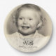 Vintage photo 90th birthday plates featuring personalised childhood picture, custom party table decor for nostalgic celebrations.