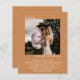 These beautiful invitations are simple, modern, and minimalist, as well as being budget friendly and affordable. They feature a clean contemporary golden tan or camel coloured design with your square photo captioned with your names and the words: To Be Wed. The standard wedding verbiage and information is below. The back has room for a website URL so your guests can get all of the details online. Simple and classy, this invitation is a wonderful way to ask your friends and family to share in celebrating your special day.