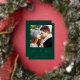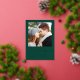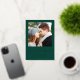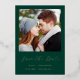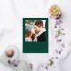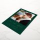 This simple, minimalist Save the Date card features a square photo above the words "Save the Date" in elegant gold foil handwriting script, followed by the couple's names, wedding date and city in sans serif font on an emerald green background. Add a more detailed message with additional information on the reverse.