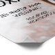 My thoughts on this product was excellent. Well printed in a gloss finishing and just the size l ordered. It arrived in good condition and am overall satisfied with the product. The printing turned out great. I was quite surprised with the finishing touch to the poster. The semi gloss was just right and a perfect size to display at the wedding.